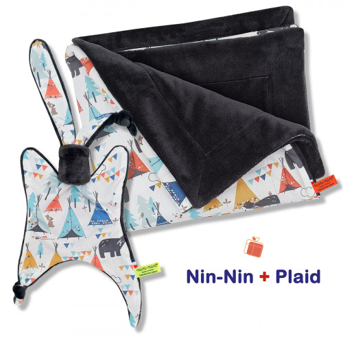Caja de nacimiento con edredón y babero Chelsea. Original y fabricado en Francia. Marca Nin-Nin