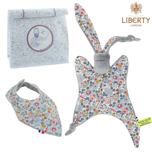 • Coffret de naissance doudou et bavoir Le Tropical. Made in France