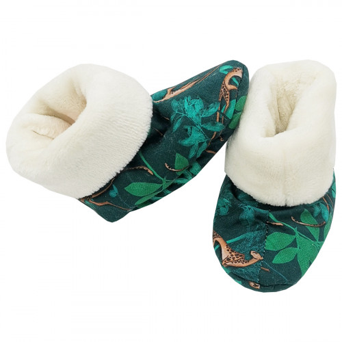 Voici des chaussons hauts Vincennes représentant des animaux de la jungle et qui réchaufferont les petits petons de bébé ! Idéal pour un cadeau de naissance original.Ces bottons Vincennes sont réalisés avec une douillette de couleur parme.