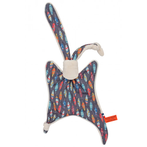Ce doudou est composé de deux types de tissus : un côté ultra doux qui rassure et apaise et un coté coton imprimé. Ses extrémités très fines sont extrêmement faciles à prendre en main et à manipuler pour les toutes petites mains des nouveau-nés.