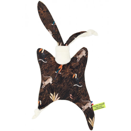 Este doudou se compone de dos tipos de tejidos: un lado ultra suave que tranquiliza y calma y un lado de algodón estampado. Sus extremos muy finos son extremadamente fáciles de agarrar y manipular para las manos muy pequeñas de recién nacidos .