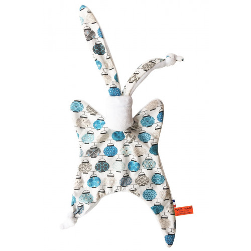 Este doudou se compone de dos tipos de tejidos: un lado ultra suave que tranquiliza y calma y un lado de algodón estampado. Sus extremos muy finos son extremadamente fáciles de agarrar y manipular para las manos muy pequeñas de recién nacidos .
