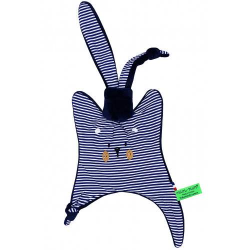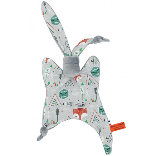 Este doudou se compone de dos tipos de tejidos: un lado ultra suave que tranquiliza y calma y un lado de algodón estampado. Sus extremos muy finos son extremadamente fáciles de agarrar y manipular para las manos muy pequeñas de recién nacidos .