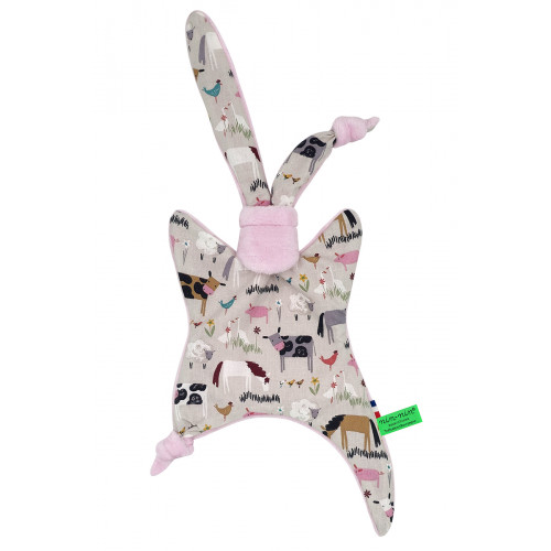 Ce doudou est composé de deux types de tissus : un côté ultra doux qui rassure et apaise et un coté coton imprimé. Ses extrémités très fines sont extrêmement faciles à prendre en main et à manipuler pour les toutes petites mains des nouveau-nés.