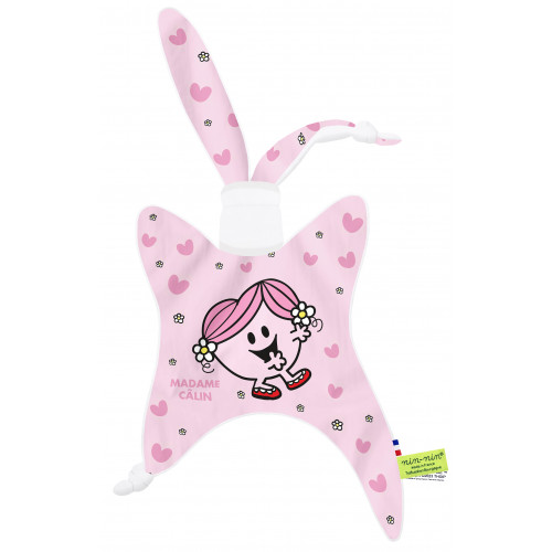 Este doudou se compone de dos tipos de tejidos: un lado ultra suave que tranquiliza y calma y un lado de algodón estampado. Sus extremos muy finos son extremadamente fáciles de agarrar y manipular para las manos muy pequeñas de recién nacidos .