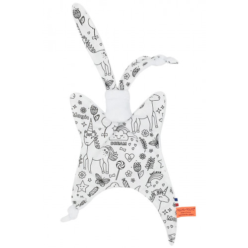 Ce doudou est composé de deux types de tissus : un côté ultra doux qui rassure et apaise et un coté coton imprimé. Ses extrémités très fines sont extrêmement faciles à prendre en main et à manipuler pour les toutes petites mains des nouveau-nés.
