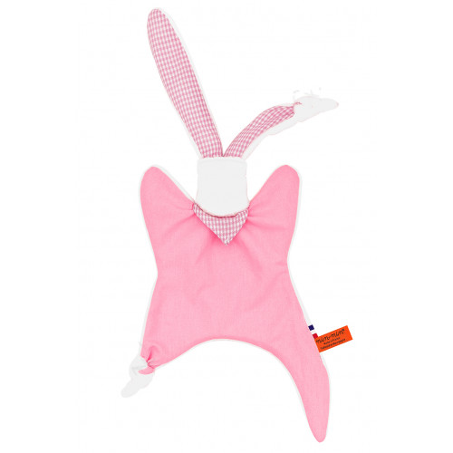 Este doudou se compone de dos tipos de tejidos: un lado ultra suave que tranquiliza y calma y un lado de algodón estampado. Sus extremos muy finos son extremadamente fáciles de agarrar y manipular para las manos muy pequeñas de recién nacidos .