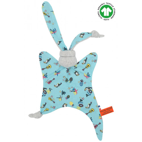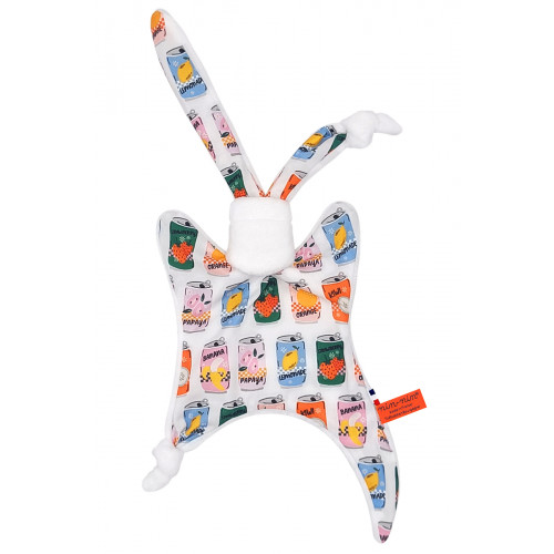 Este doudou se compone de dos tipos de tejidos: un lado ultra suave que tranquiliza y calma y un lado de algodón estampado. Sus extremos muy finos son extremadamente fáciles de agarrar y manipular para las manos muy pequeñas de recién nacidos .