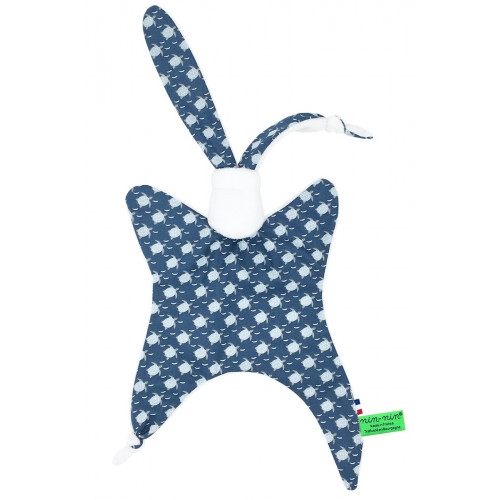 Este doudou se compone de dos tipos de tejidos: un lado ultra suave que tranquiliza y calma y un lado de algodón estampado. Sus extremos muy finos son extremadamente fáciles de agarrar y manipular para las manos muy pequeñas de recién nacidos .