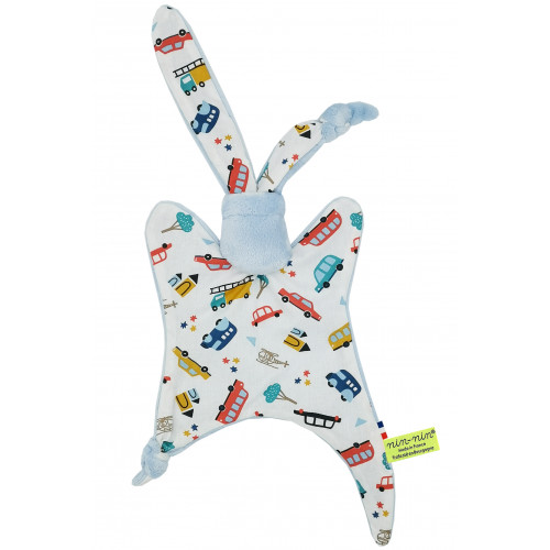 Este doudou se compone de dos tipos de tejidos: un lado ultra suave que tranquiliza y calma y un lado de algodón estampado. Sus extremos muy finos son extremadamente fáciles de agarrar y manipular para las manos muy pequeñas de recién nacidos .