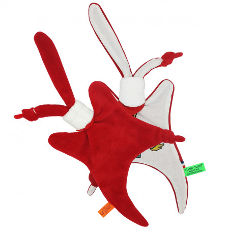 Este doudou se compone de dos tipos de tejidos: un lado ultra suave que tranquiliza y calma y un lado de algodón estampado. Sus extremos muy finos son extremadamente fáciles de agarrar y manipular para las manos muy pequeñas de recién nacidos .