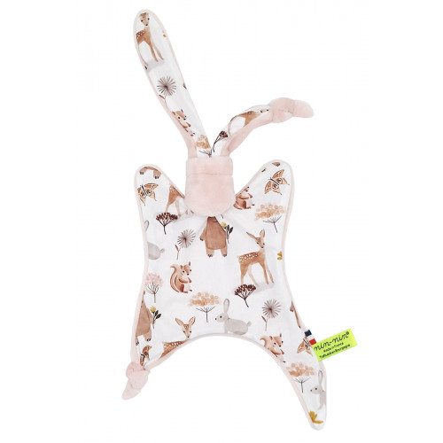 Este doudou se compone de dos tipos de tejidos: un lado ultra suave que tranquiliza y calma y un lado de algodón estampado. Sus extremos muy finos son extremadamente fáciles de agarrar y manipular para las manos muy pequeñas de recién nacidos .