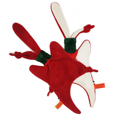 Este doudou se compone de dos tipos de tejidos: un lado ultra suave que tranquiliza y calma y un lado de algodón estampado. Sus extremos muy finos son extremadamente fáciles de agarrar y manipular para las manos muy pequeñas de recién nacidos .