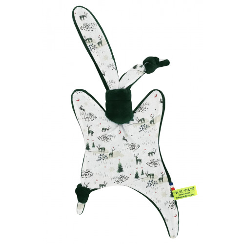 Este doudou se compone de dos tipos de tejidos: un lado ultra suave que tranquiliza y calma y un lado de algodón estampado. Sus extremos muy finos son extremadamente fáciles de agarrar y manipular para las manos muy pequeñas de recién nacidos .