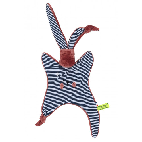 Este doudou se compone de dos tipos de tejidos: un lado ultra suave que tranquiliza y calma y un lado de algodón estampado. Sus extremos muy finos son extremadamente fáciles de agarrar y manipular para las manos muy pequeñas de recién nacidos .