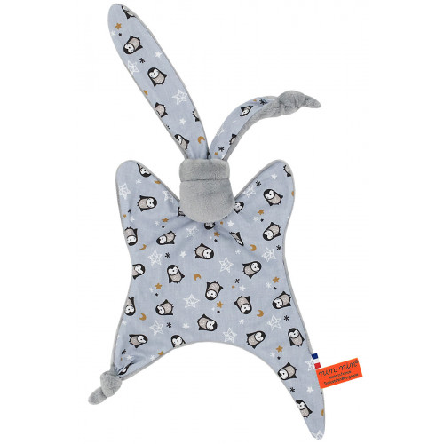 Este doudou se compone de dos tipos de tejidos: un lado ultra suave que tranquiliza y calma y un lado de algodón estampado. Sus extremos muy finos son extremadamente fáciles de agarrar y manipular para las manos muy pequeñas de recién nacidos .