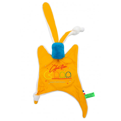 Ce doudou est composé de deux types de tissus : un côté ultra doux qui rassure et apaise et un coté coton imprimé. Ses extrémités très fines sont extrêmement faciles à prendre en main et à manipuler pour les toutes petites mains des nouveau-nés.