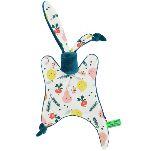 Ce doudou est composé de deux types de tissus : un côté ultra doux qui rassure et apaise et un coté coton imprimé. Ses extrémités très fines sont extrêmement faciles à prendre en main et à manipuler pour les toutes petites mains des nouveau-nés.