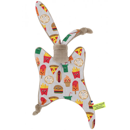 Ce doudou est composé de deux types de tissus : un côté ultra doux qui rassure et apaise et un coté coton imprimé. Ses extrémités très fines sont extrêmement faciles à prendre en main et à manipuler pour les toutes petites mains des nouveau-nés.