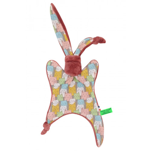 Ce doudou est composé de deux types de tissus : un côté ultra doux qui rassure et apaise et un coté coton imprimé. Ses extrémités très fines sont extrêmement faciles à prendre en main et à manipuler pour les toutes petites mains des nouveau-nés.