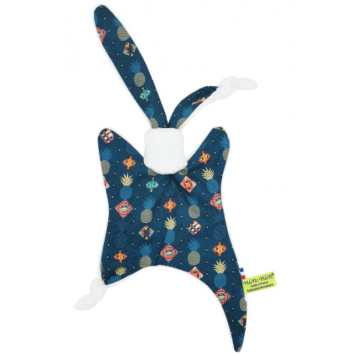 Ce doudou est composé de deux types de tissus : un côté ultra doux qui rassure et apaise et un coté coton imprimé. Ses extrémités très fines sont extrêmement faciles à prendre en main et à manipuler pour les toutes petites mains des nouveau-nés.
