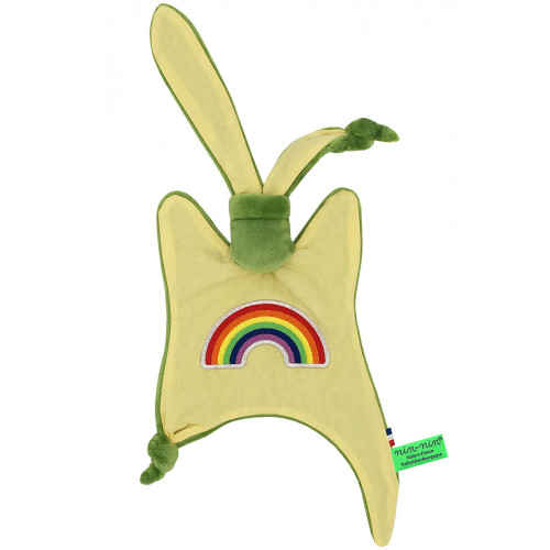 Ce doudou est composé de deux types de tissus : un côté ultra doux qui rassure et apaise et un coté coton imprimé. Ses extrémités très fines sont extrêmement faciles à prendre en main et à manipuler pour les toutes petites mains des nouveau-nés.