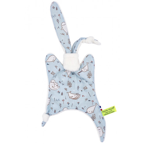 Ce doudou est composé de deux types de tissus : un côté ultra doux qui rassure et apaise et un coté coton imprimé. Ses extrémités très fines sont extrêmement faciles à prendre en main et à manipuler pour les toutes petites mains des nouveau-nés.
