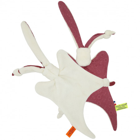 Ce doudou est composé de deux types de tissus : un côté ultra doux qui rassure et apaise et un coté coton imprimé. Ses extrémités très fines sont extrêmement faciles à prendre en main et à manipuler pour les toutes petites mains des nouveau-nés.