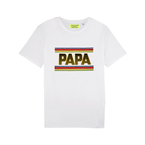 Le macaron bleu or rouge brodé en bas à droite nous rappelle que ce T-shirt est fabriqué en France avec beaucoup d'amour...